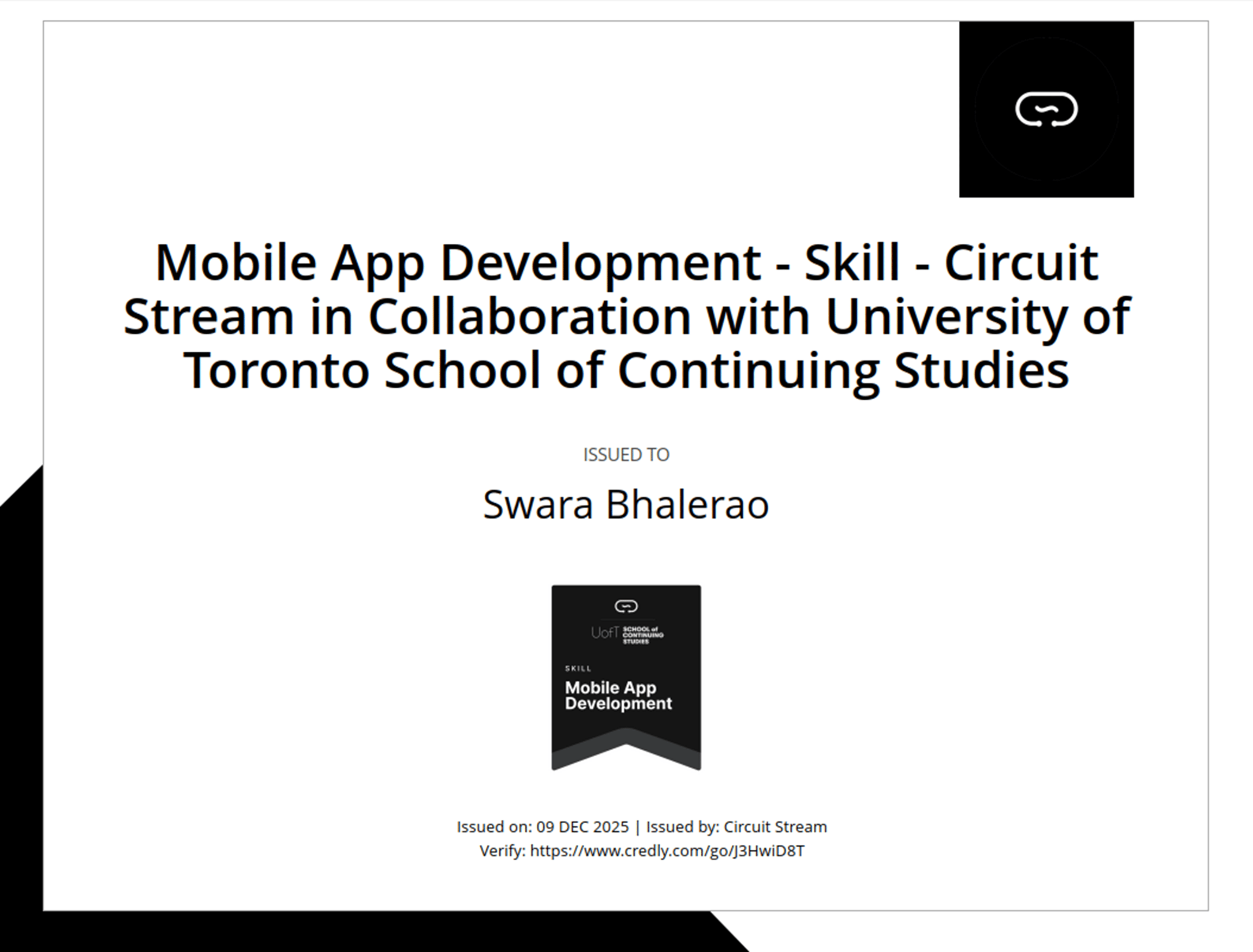 University of Toronto - Mobile App Development - Course - Skill Badge