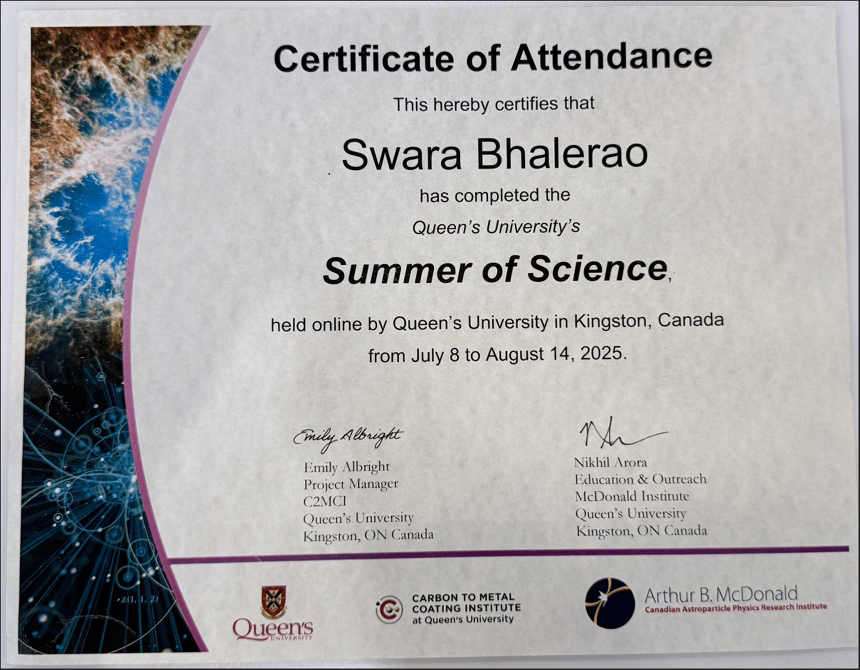 Queens University - Summer of Science - Summer Course