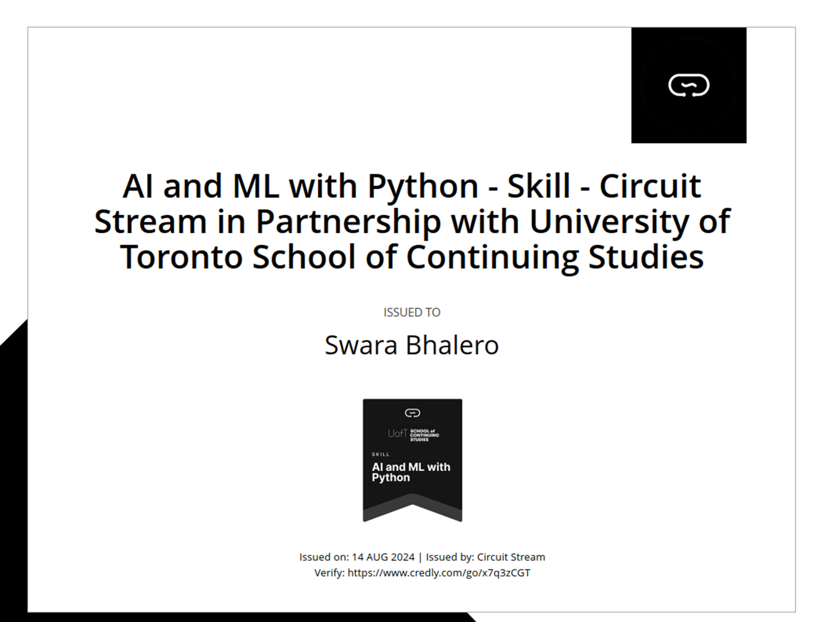 University of Toronto - AI/ML with Python Course